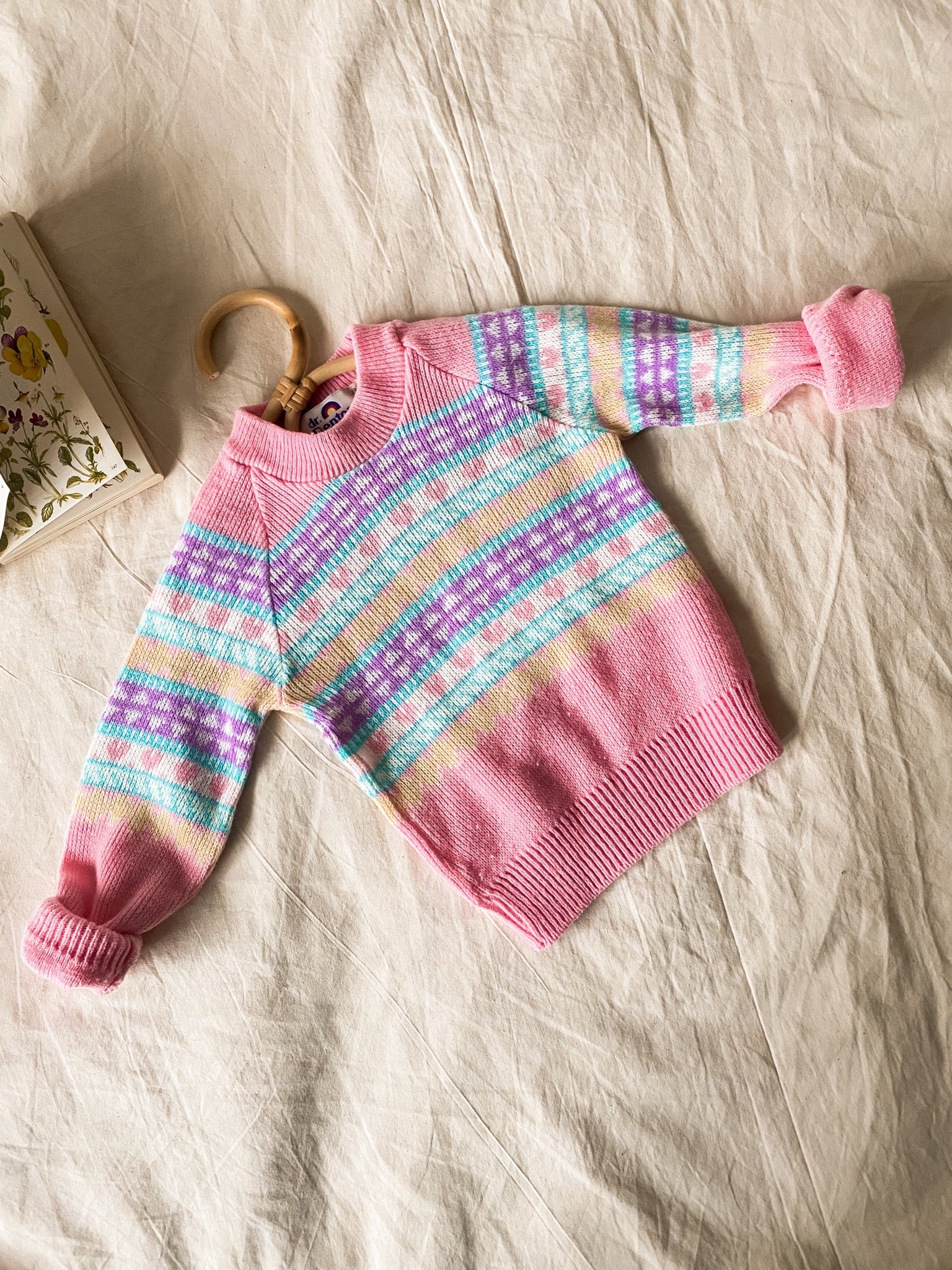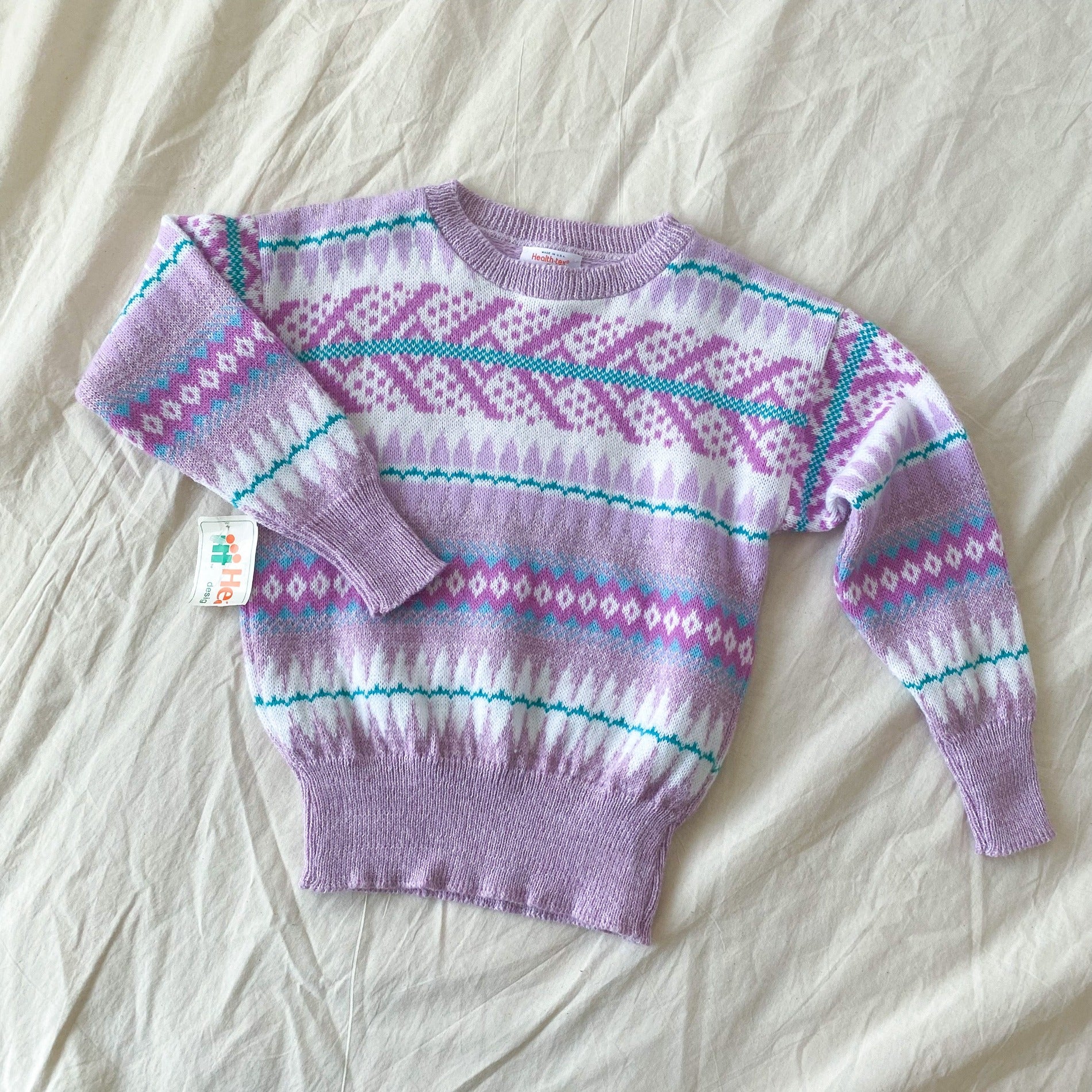 Vintage Purple Knit Approx 6 Years Teal Peach